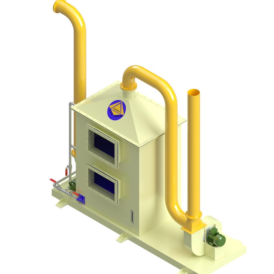 Wet Scrubber adalah mesin penyaring udara kotor yang terancang untuk mengatasi polusi gas dan partikel debu dari proses industri. Sistem ini bekerja dengan cara menyemprotkan cairan (biasanya air) ke dalam aliran udara yang tercemar, sehingga partikel polutan terjebak dalam cairan tersebut dan tidak keluar ke lingkungan. Proses ini sangat efektif untuk menangkap zat kimia berbahaya, asap, bau, serta debu halus dari cerobong atau ruang produksi.